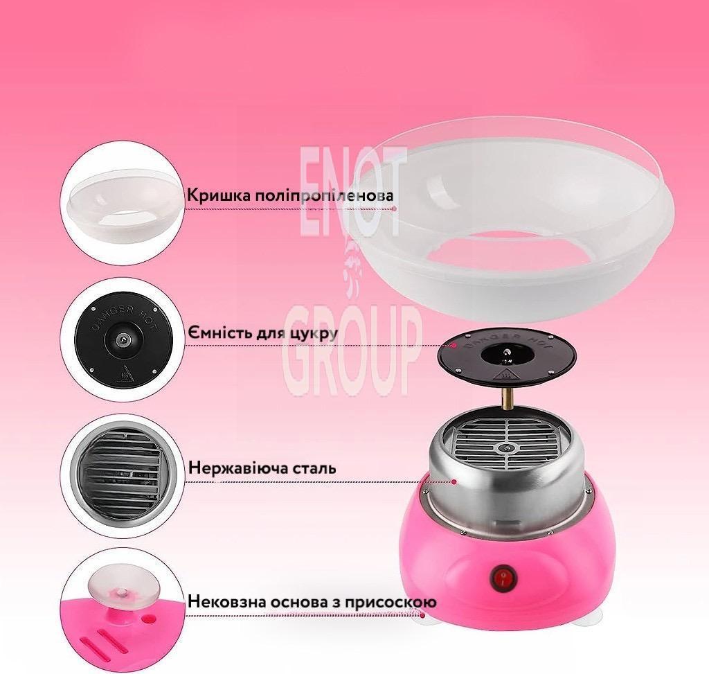 - Здоровий вибір: Наш апарат виготовляє цукрову вату без хімічних барвників, підсилювачів смаку та консервантів, гарантуючи вашу безпеку і здоров'я.