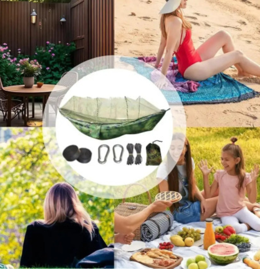 Гамак з москітною сіткою дозволяє насолоджуватися відпочинком без турбот про комарів та інших комах. Вбудований мішечок для зберігання зручно розташований у гамаку, надаючи місце для ваших ключів, окулярів, пляшок та інших дрібниць. Спеціальна конструкція гамака сприяє природному положенню тіла, забезпечуючи максимальний комфорт і розслаблення. Цей гамак має привабливий вигляд, який додасть затишку та краси вашій ділянці, створюючи атмосферу уединення та комфорту.