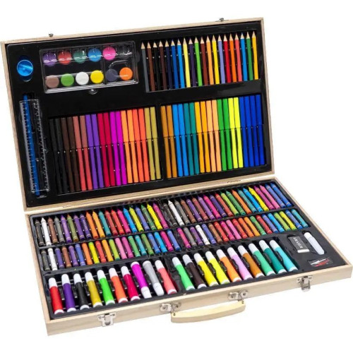 Художній набір із 220 предметів у дерев'яному кейсі – все для творчості в одному комплекті