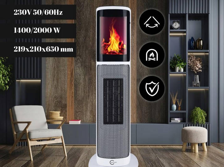 Зустрічайте сучасне рішення для тепла та затишку — Caruzzo Q20K, стильний колонний тепловентилятор з імітацією живого полум’я. Цей обігрівач не лише швидко прогріває приміщення, але й створює атмосферу справжнього домашнього комфорту завдяки візуальному ефекту каміна, який дарує спокій та релакс.