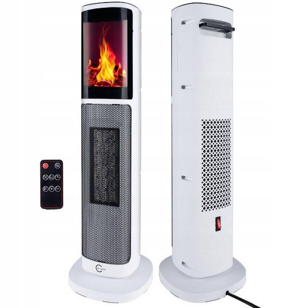 Колонний обігрівач Caruzzo Q20K 2000 Вт із реалістичним ефектом каміна та пультом дистанційного керування, білий