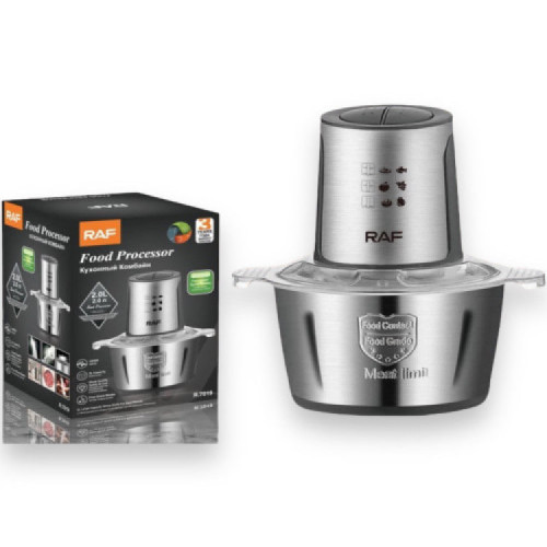 RAF R7019 — багатофункціональний кухонний комбайн для тих, хто цінує швидкість, потужність та компактність. З об'ємом чаші 2 літри та потужністю 1000 Вт він легко впорається з подрібненням овочів, м’яса, фруктів, горіхів, а також змішуванням інгредієнтів для соусів, фаршу чи дитячого харчування.
