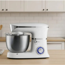 Модель оснащена регульованою швидкістю і кількома насадками: віночком для збивання, гаком для тіста та лопаткою для змішування. Це дозволяє ефективно обробляти різні види інгредієнтів — від рідких кремів до густого дріжджового тіста. Міцний корпус і нержавіюча сталь чаші гарантують довговічність і надійність пристрою, а сучасний дизайн робить його стильним доповненням кухні.