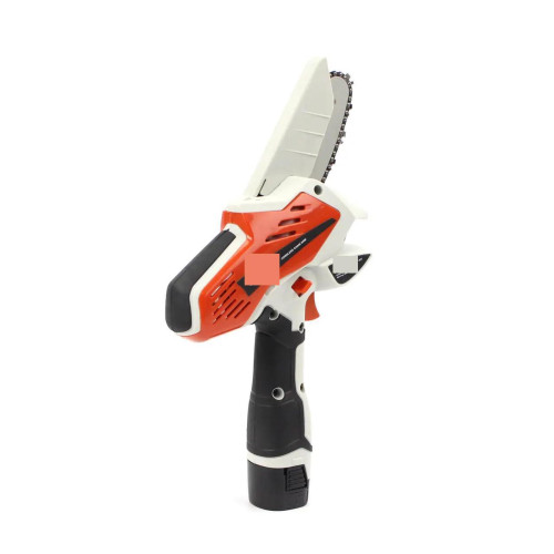 Міні-пила оснащена шиною довжиною 10 см, що дозволяє досягти високої продуктивності. Один повний заряд акумулятора дозволяє зробити до 80 різів гілок діаметром до 4 см, що робить інструмент надійним у довготривалих роботах. -