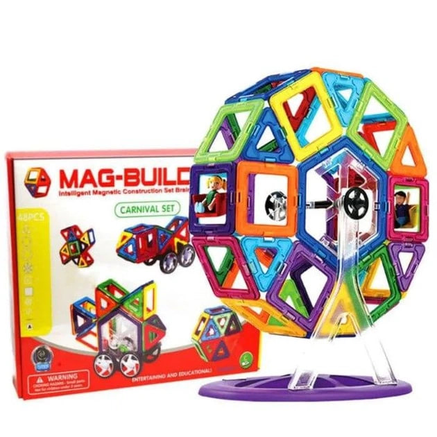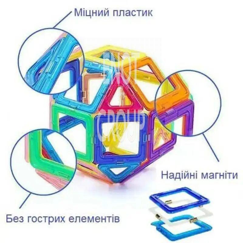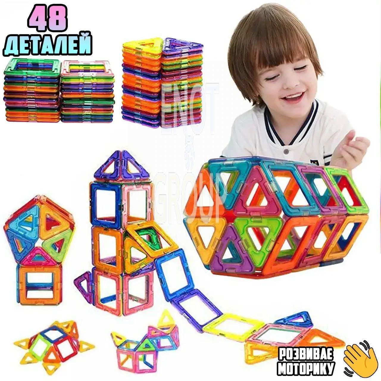- 48 яскравих елементів – набір включає трикутники, квадрати та інші фігури, що легко з’єднуються завдяки магнітам.