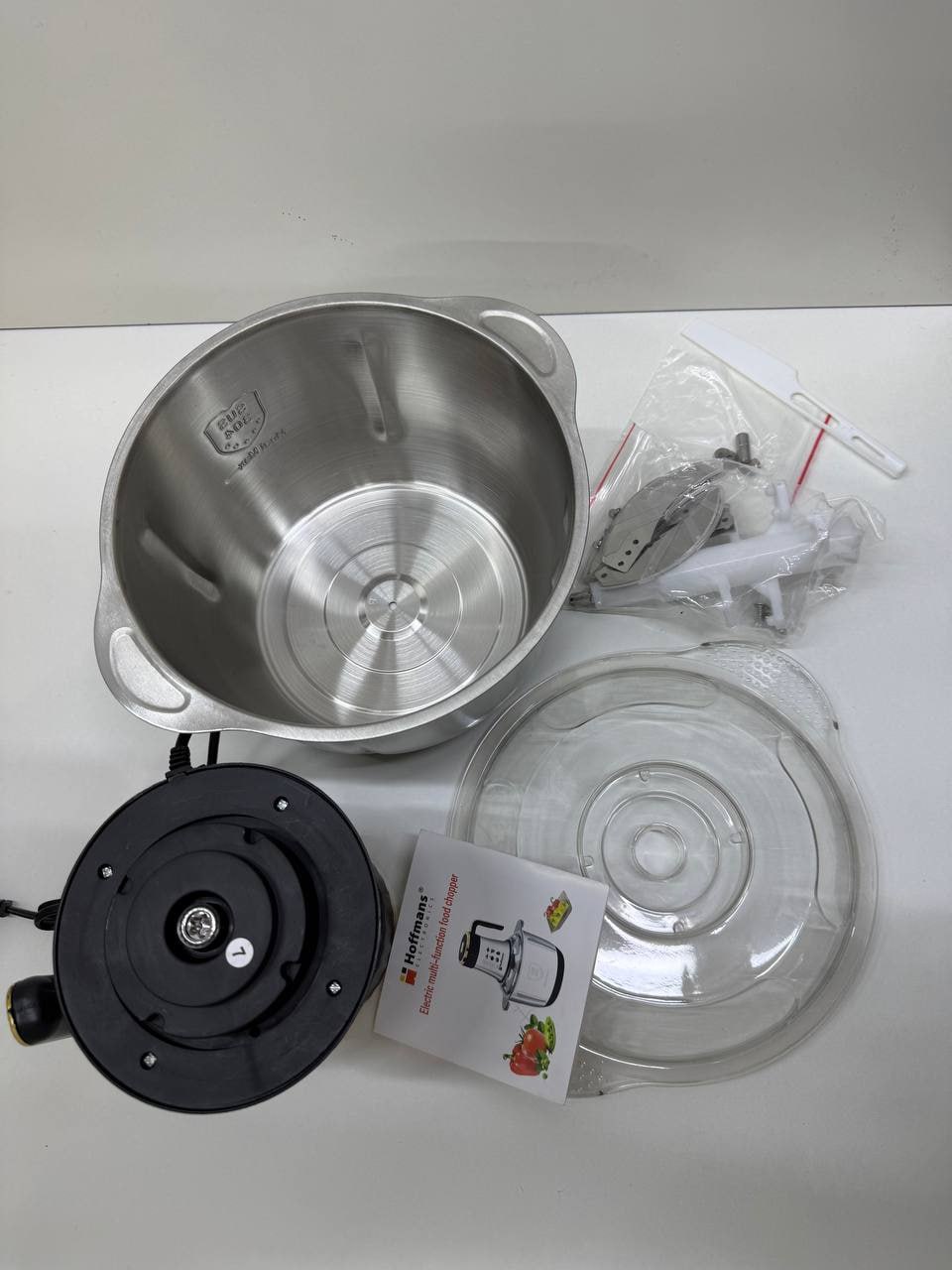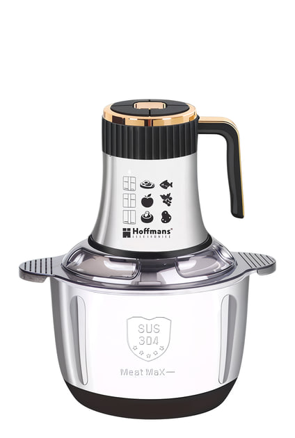 Металевий подрібнювач Hoffmans UltraChop HM-8848 розроблений для швидкої та ефективної обробки великої кількості продуктів. Містка чаша з нержавіючої сталі об’ємом 5 літрів дозволяє готувати фарш, овочеві суміші, соуси та заготовки за мінімальний час.