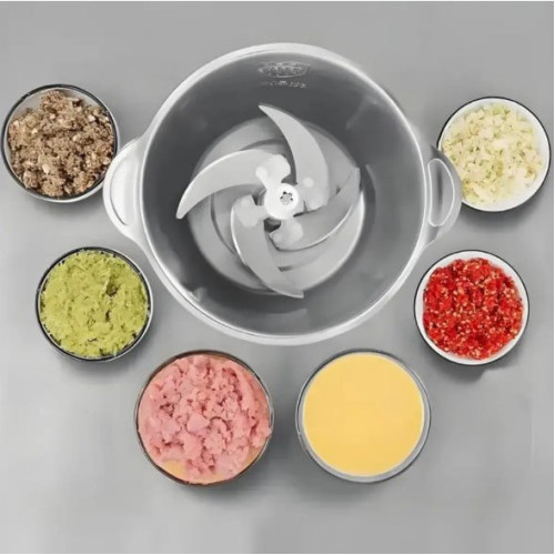 Hoffmans HM-8840 – потужний металевий подрібнювач об’ємом 2 літри та потужністю 1200 Вт, створений для ефективного подрібнення овочів, фруктів, горіхів, сухарів та інших продуктів. Надійний мотор забезпечує стабільну роботу навіть при тривалому використанні, а корпус із високоякісного металу гарантує довговічність і стійкість до пошкоджень.