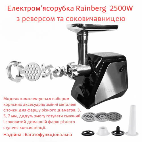 М'ясорубка 4в1 Rainberg RB-676 2500 Вт м'ясорубка соковижималка тертка шинкувальник в одному