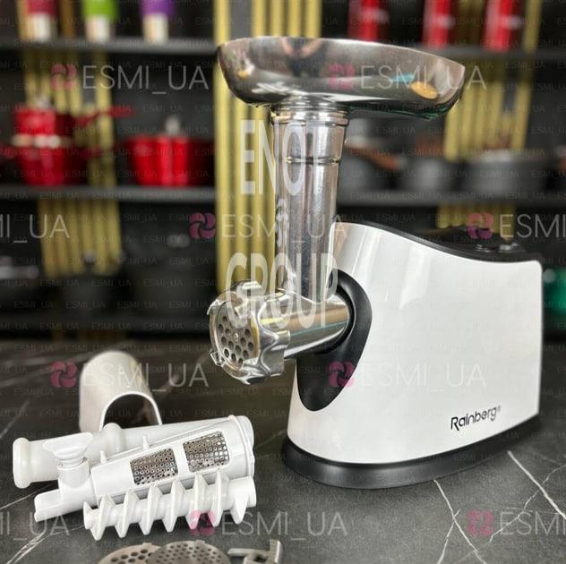 М'ясорубка Rainberg RB-674 3800 Вт з реверсом і насадками для ковбас та томатів 3в1