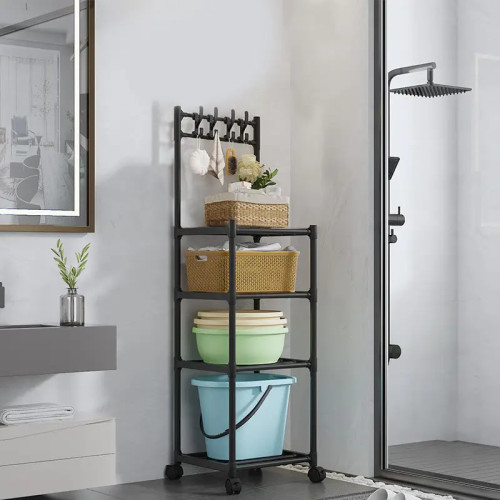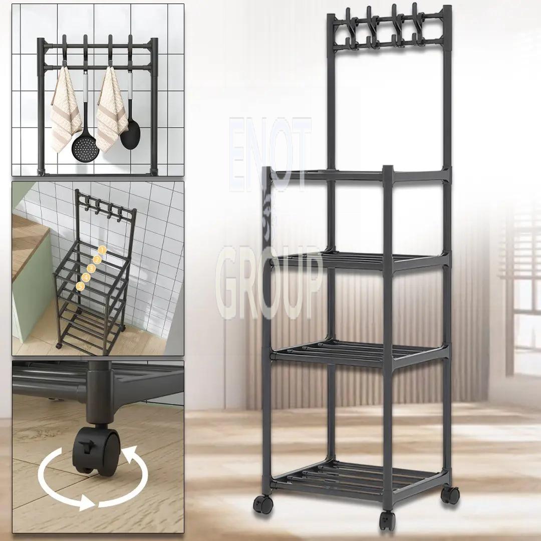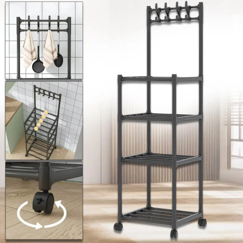 Мобільна 4-ярусна полиця-етажерка з гачками SKLM-21 130×42×34 см