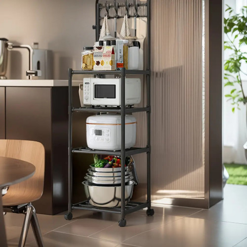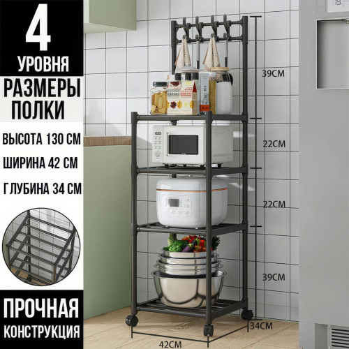 - Простір для зберігання: 4 полиці для різноманітних предметів, від кухонного начиння до книг і аксесуарів.