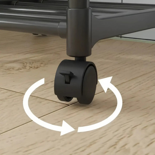 - Мобільність: 4 поворотні колеса дозволяють легко переміщати етажерку навіть в завантаженому стані.