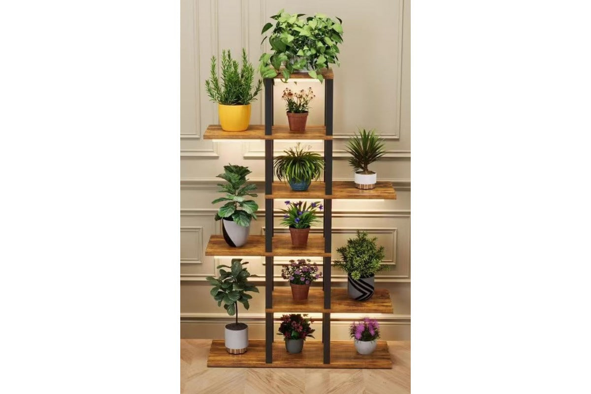 Міцний металевий каркас гарантує надійність та стабільність, а відкриті полиці забезпечують оптимальний доступ світла до рослин. Полиця легко встановлюється без кріплення до стіни та підходить для різних видів вазонів — від маленьких сукулентів до великих декоративних рослин.