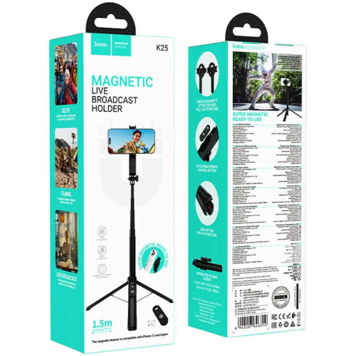 Монопод-трипод Hoco K25 (1.5 м) — це універсальний аксесуар для фото- та відеозйомки, який об’єднує селфі-палку, міні-штатив та Bluetooth-пульт для дистанційного керування камерою. Він стане незамінним помічником для блогерів, стрімерів, фотографів, мандрівників і всіх, хто цінує зручність, стабільність і якість зйомки.