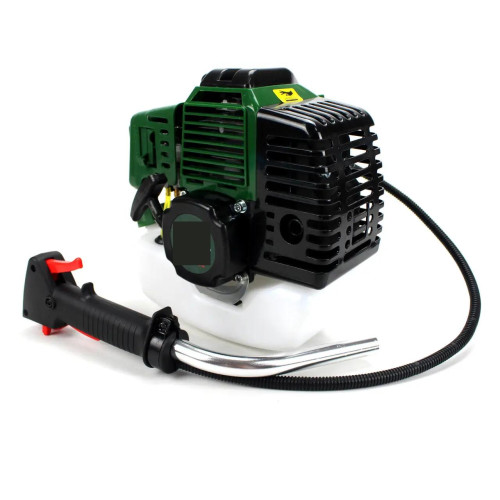 Основні складові мотокоси включають різальний елемент, штангу з ведучим валом та рукояткою для управління, а також двигун з паливним баком і механізмами. Завдяки своїй легкості та здатності до розбирання, вона ідеально підходить для транспортування та технічного обслуговування. Для додаткового комфорту можна встановити плечовий ремінь на штангу.
