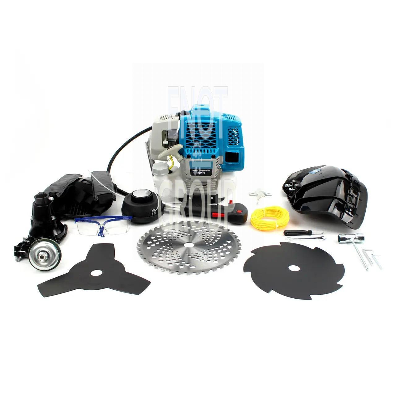 Цей модель оснащена потужним двигуном 4800 Вт (6,5 л.с.), що дозволяє впоратись з великими ділянками. Висока швидкість обертання ріжучого елемента забезпечує ефективність роботи на великих площах. Крім того, у комплектацію входять додаткові насадки для розширення функціональних можливостей: «Човновий мотор», «Плуг», «Кущоріз».
