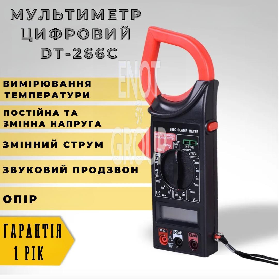 Цифровий мультиметр DT 266C — це надійний та багатофункціональний прилад, що призначений для професійних та побутових електричних вимірювань. Завдяки своїм широким можливостям, він стане ідеальним помічником для електриків, техніків та всіх, хто працює з електричними системами.