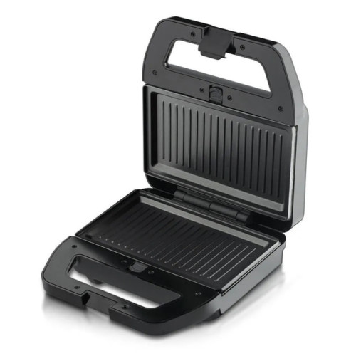 Прилад оснащений антипригарними пластинами, що запобігають пригоранню та полегшують очищення. Безпечна конструкція з блокуванням корпусу та зручні термоізольовані ручки роблять використання комфортним. Стильний сріблястий дизайн підходить для будь-якої кухні, а компактні розміри і вертикальне зберігання економлять місце.