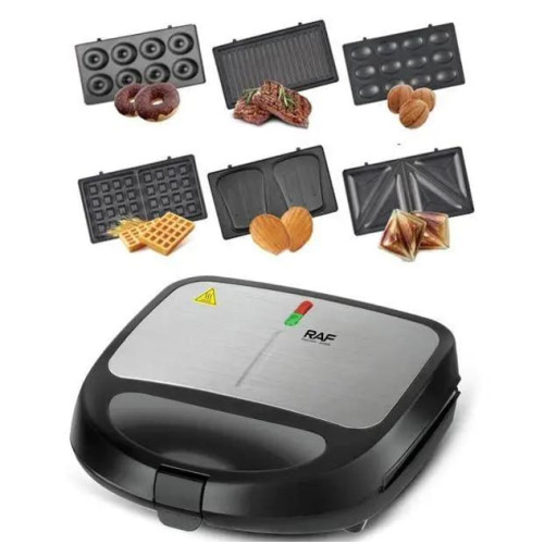 Мультипекар RAF R 541 6в1 850 Вт гриль, вафельниця, сендвічниця, горішниця та пончикмейкер з антипригарними пластинами