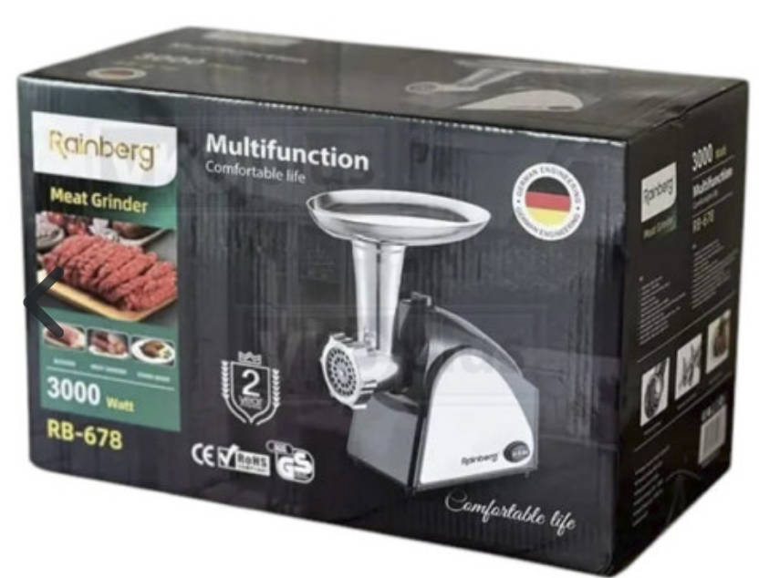 Шукаєте універсальну м’ясорубку, яка не тільки приготує ідеальний фарш, але й подарує вам свіжий сік? Rainberg RB-678 — це потужна м’ясорубка та соковижималка 2в1, яка здивує вас своєю функціональністю та легкістю використання!