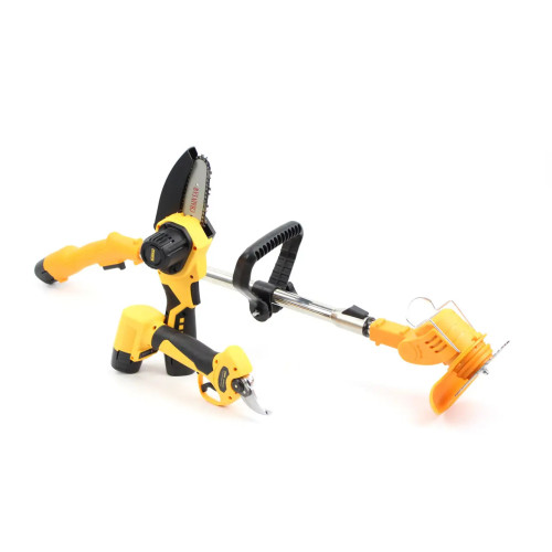 Цей акумуляторний набір від Instrumentop об'єднує в собі три інструменти, які забезпечать вам бездоганний догляд за садом. Призначений для широкого спектру робіт, від обрізки трави та чагарників до роботи з деревиною, він стане незамінним помічником як для професіоналів, так і для любителів садівництва.