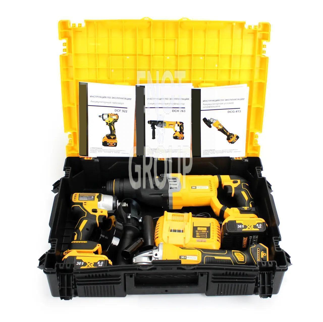 Набір інструментів Instrumentop 36V 3 в 1 Перфоратор DCH263, Болгарка DCG413, Гайковерт DCF922