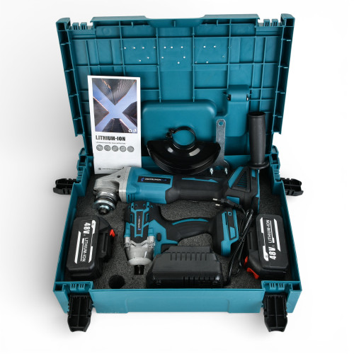 Ударний гайковерт забезпечує високий крутний момент для швидкого відкручування та закручування болтів і гайок, навіть у складних умовах. Кутова шліфмашина підходить для різання металу, каменю, кераміки та інших матеріалів, а також для шліфування поверхонь.