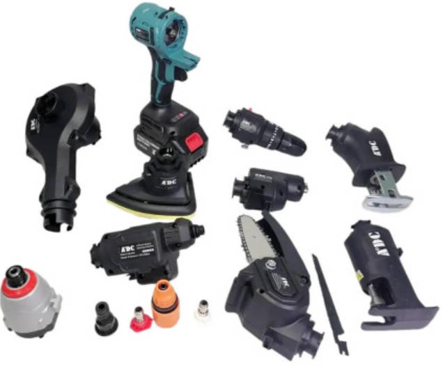 Повний комплект для роботи: У наборі є все необхідне – дриль, шуруповерт, болгарка, пила та інші інструменти.