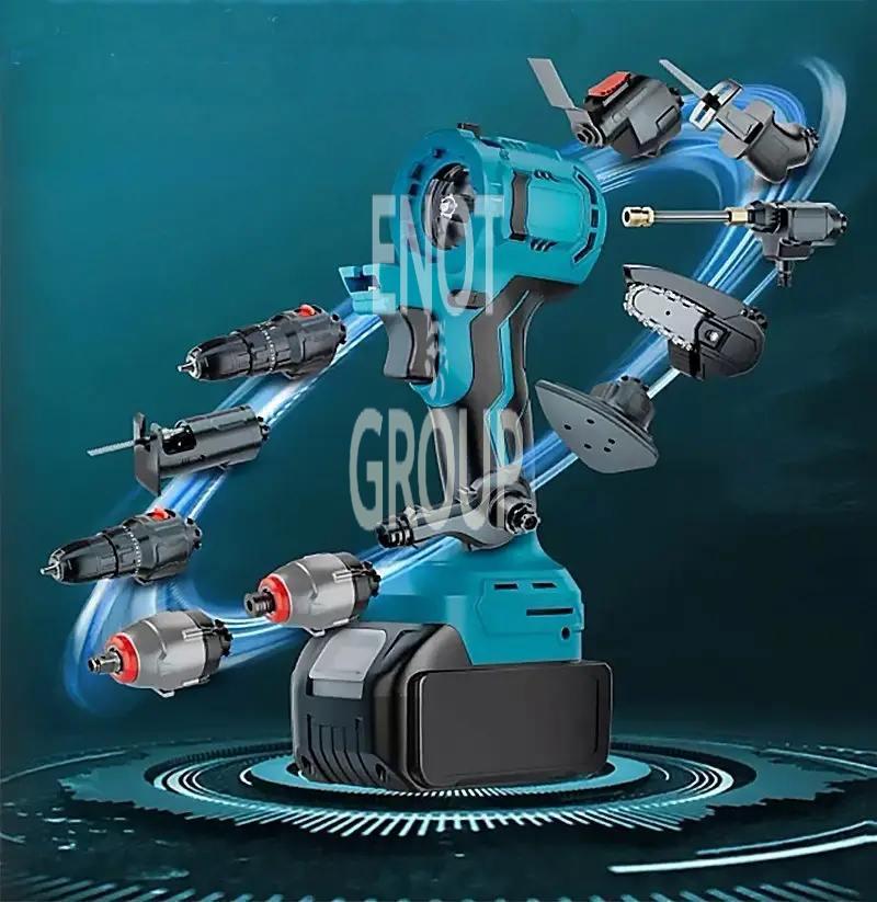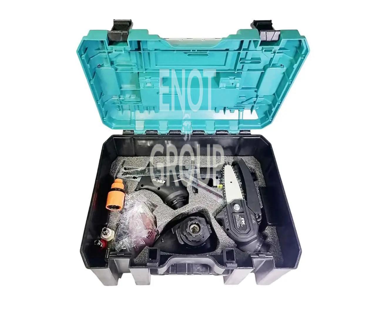 Повний комплект для роботи: У наборі є все необхідне – дриль, шуруповерт, болгарка, пила та інші інструменти.
