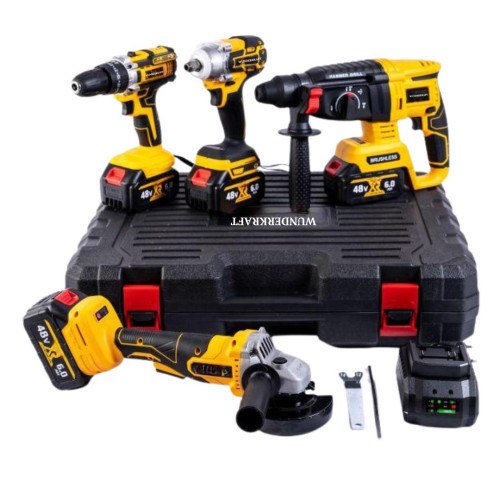 Набір акумуляторного електроінструмента 4 в 1 Wunderkraft шуруповерт, гайковерт, болгарка і перфоратор з літій-іонним акумулятором 48V 6.0Ah для дому, майстерні та будівництва