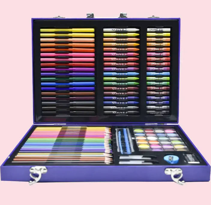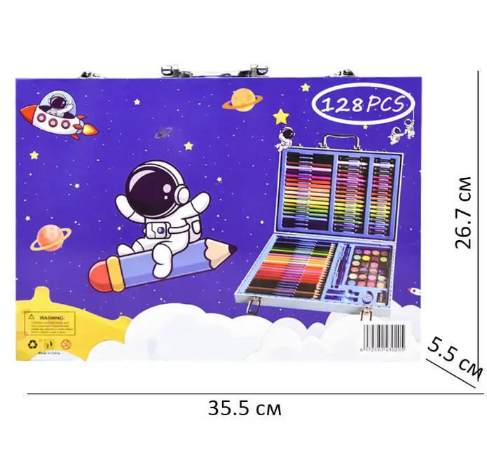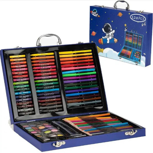 Цей комплект допоможе дітям розвивати творчі здібності та створювати яскраві проєкти. Він включає фарби, олівці, фломастери, пластилін та аксесуари для ліплення та рукоділля. Набір підходить для домашніх занять, творчих гуртків або школи, стимулюючи уяву, креативність та художні навички.