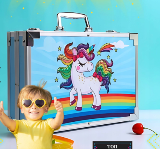 Замовляйте набір для малювання "Єдиноріг" у синій алюмінієвій валізці на 145 предметів та даруйте дитині натхнення на нові творчі досягнення!