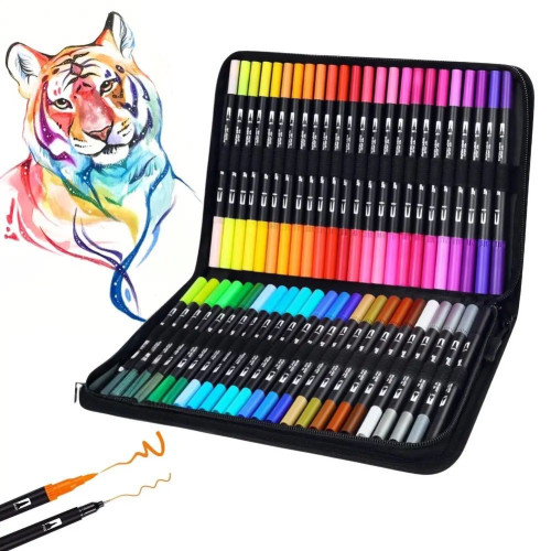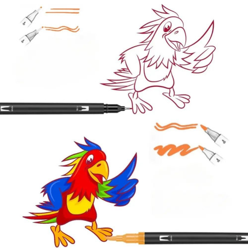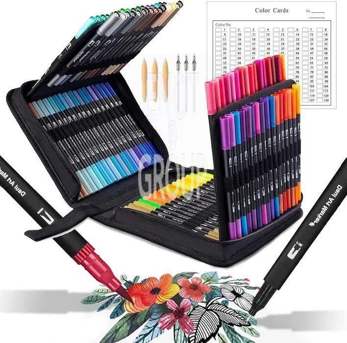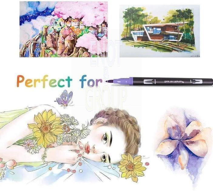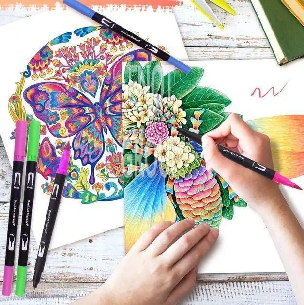 Набір маркерів Dual Brush Pens — це відмінний вибір для художників, дизайнерів і любителів малювання. Ці маркери створені для того, щоб допомогти вам створювати яскраві, детальні і багатошарові малюнки. Вони мають дві різні насадки: тонку та кистьову, що дозволяє легко переходити від точних ліній до плавних переходів та витончених штрихів.