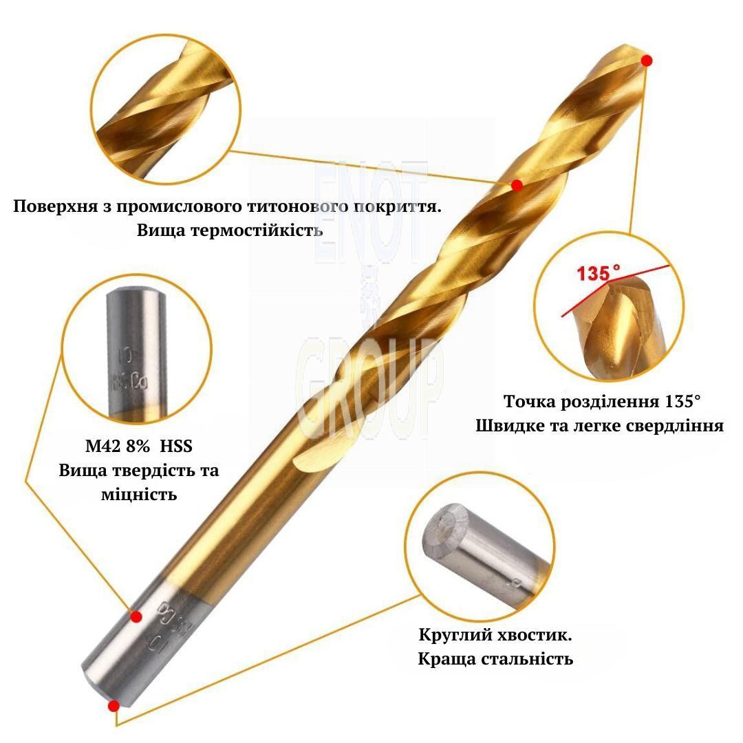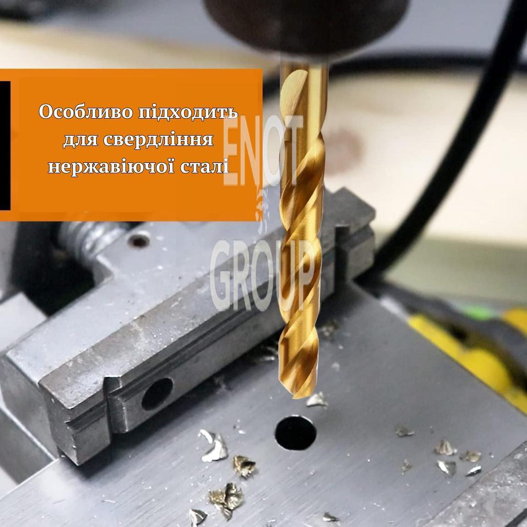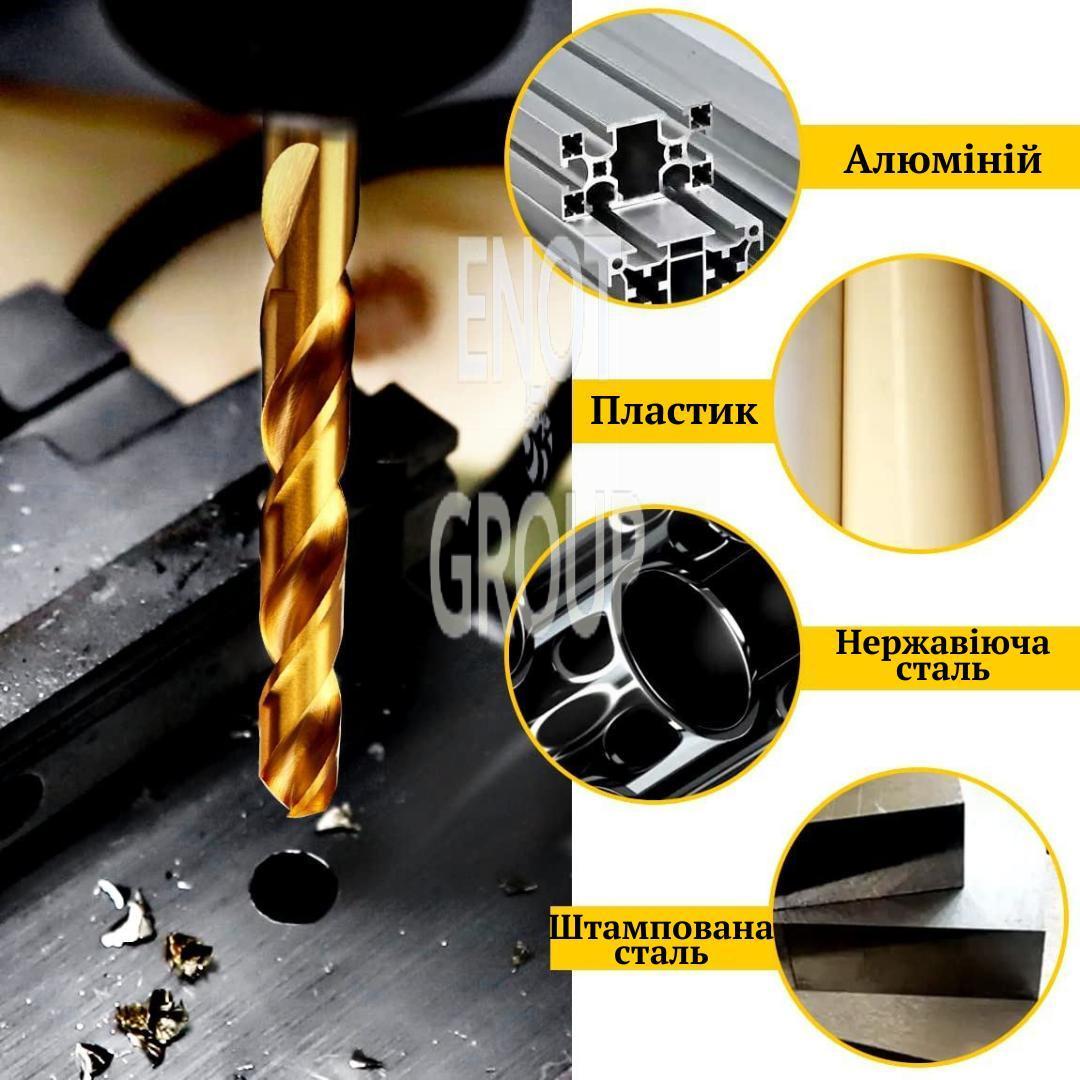 - Міцність та надійність: титанове покриття і сталь HSS гарантують тривалу експлуатацію свердел.