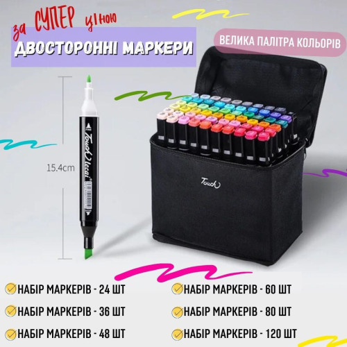 Розкрийте свою креативність з наборами двосторонніх маркерів для скетчингу! Ці маркери ідеально підходять для художників, дизайнерів та любителів малювання, надаючи можливість створювати яскраві та деталізовані ілюстрації. Завдяки двосторонній конструкції, маркери забезпечують універсальність і комфорт у використанні.
