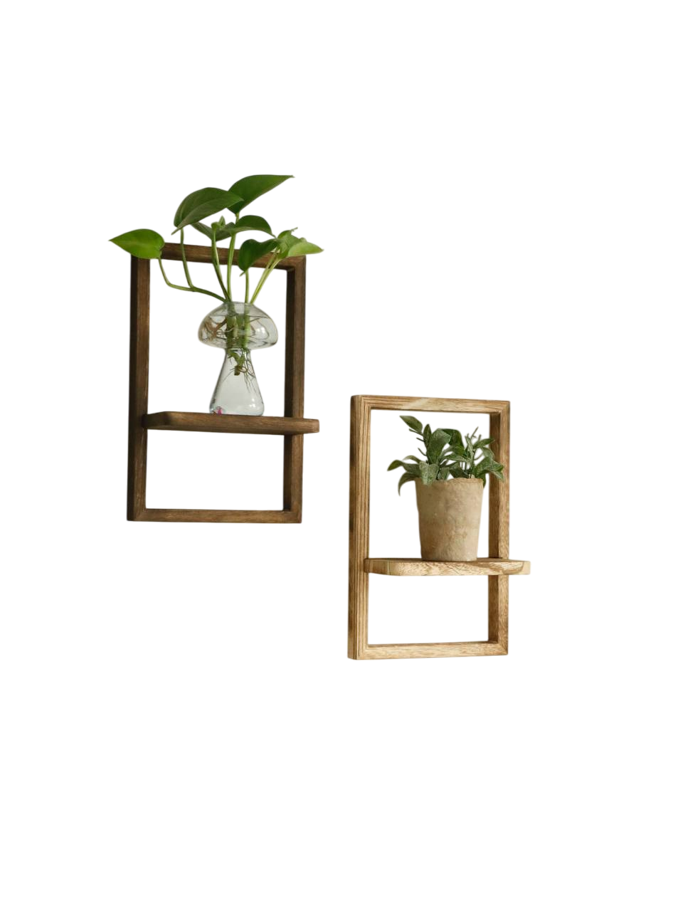 Комплект включає 2 полиці розміром 20 × 30 см, які можна розташувати разом для створення гармонійної композиції або окремо, підкреслюючи різні зони кімнати. Натуральне дерево гарантує міцність та довговічність, а просте настінне кріплення забезпечує надійне встановлення.