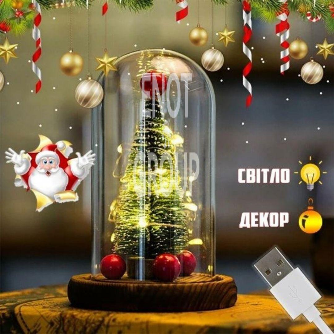 Новорічна ялинка в колбі з LED підсвічуванням та кульками Christmas Decor, USB