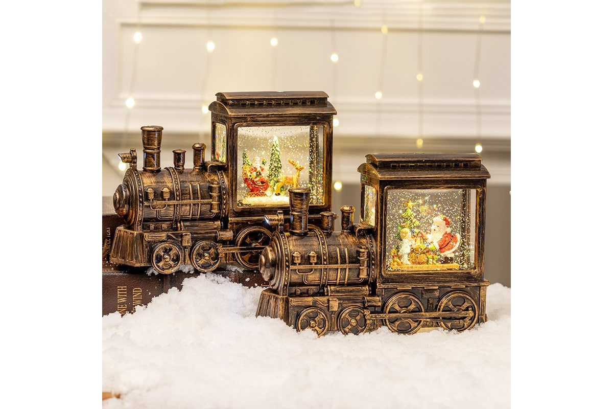 Новорічний LED-світильник-декор Паровоз HC-D013 музичний святковий світильник із ефектом падаючого снігу, USB та батарейки AA, настільний декор