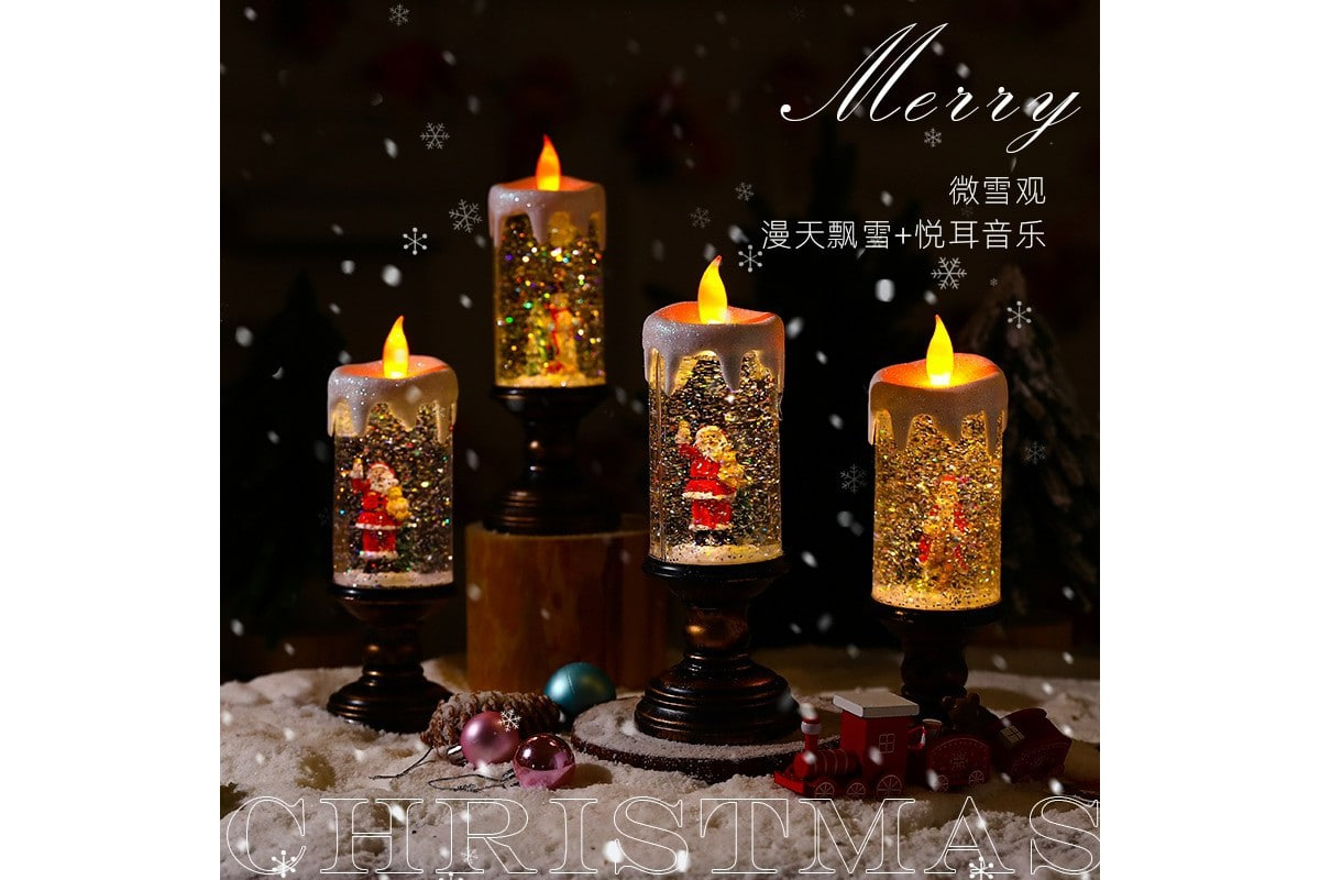 Новорічний LED-світильник-декор Свічка HC-G032 святковий світильник із ефектом снігопаду, музикою, USB та батарейками AA, настільна прикраса