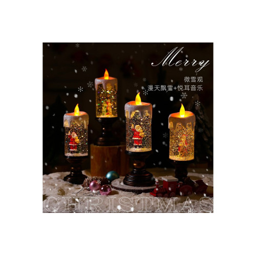 Новорічний LED-світильник-декор Свічка HC-G032 святковий світильник із ефектом снігопаду, музикою, USB та батарейками AA, настільна прикраса