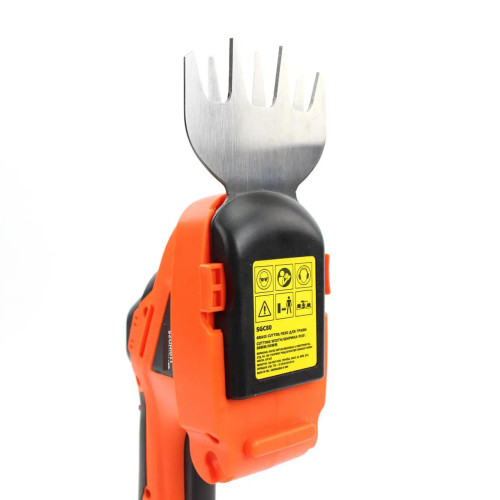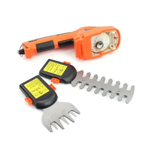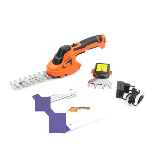 - Дві насадки: У комплекті є лезо для трави та ніж для живоплоту, що дозволяє виконувати різні види робіт по догляду за рослинами.