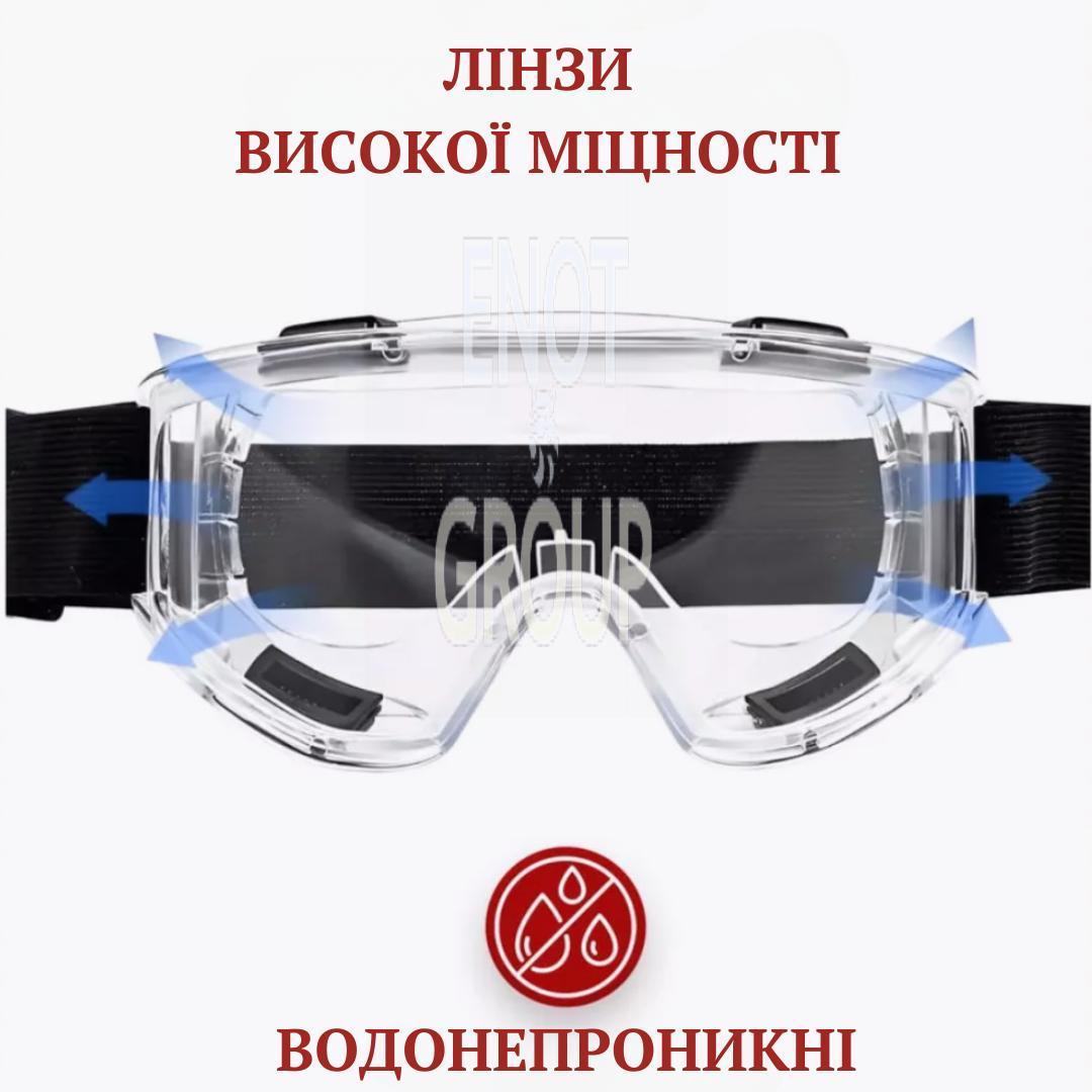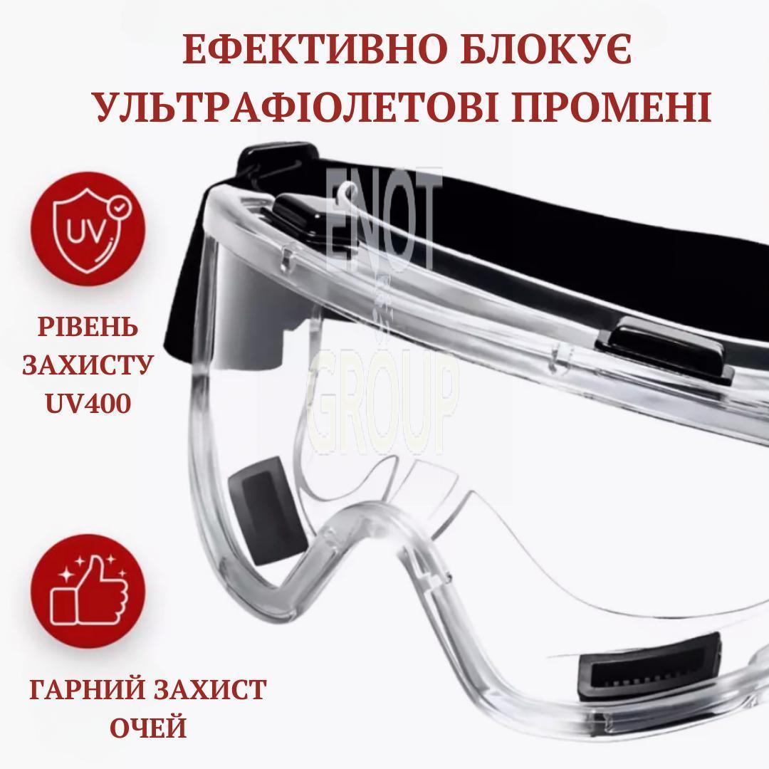 - Комфорт і безпека: Окуляри надійно захищають очі від механічних часток, пилу та хімічних речовин, забезпечуючи при цьому комфортну посадку на обличчі.