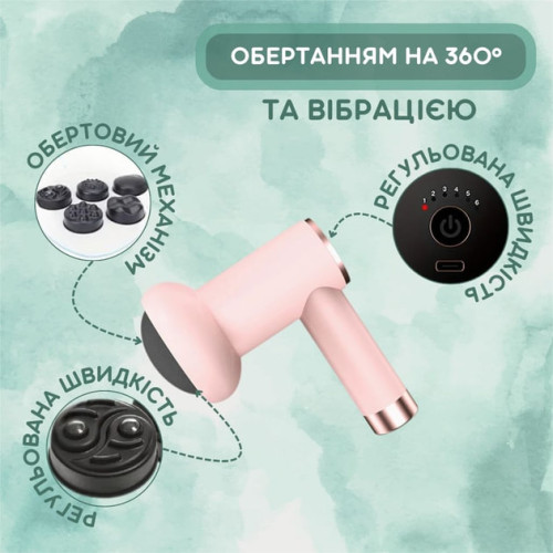 Масажер має кілька змінних насадок, кожна з яких призначена для окремих зон тіла: спини, плечей, ніг, рук і шиї. Регульована швидкість роботи дозволяє адаптувати інтенсивність масажу під ваші потреби — від легкого розслаблення до глибокої перкусії. Ергономічний дизайн та легкий корпус забезпечують зручність у використанні і тривалі сеанси без втоми рук.