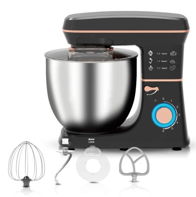 Міксер Domotec R 6673 створений для тих, хто цінує ефективність та зручність. Завдяки 1800 Вт потужності та 6 швидкостям, він легко справляється з різними завданнями. Металева чаша об'ємом 12 л забезпечує достатній об'єм для приготування великих порцій. У комплект входять три насадки: вінчик, гачок та колотушка.