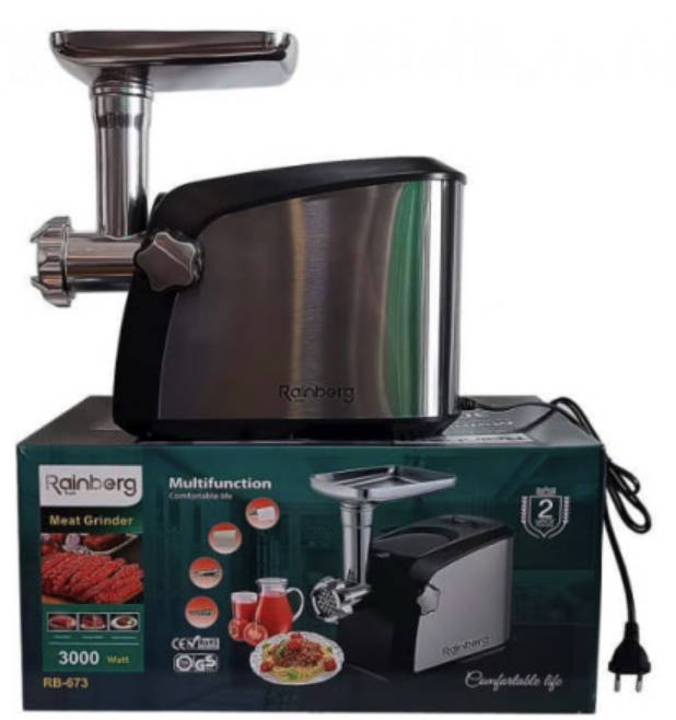 Шукаєте максимально ефективний і багатофункціональний кухонний пристрій? Електрична м’ясорубка Rainberg RB-673A із потужністю 3800 Вт стане вашим надійним помічником для щоденного приготування фаршу, соків, домашніх ковбас та навіть подрібнення овочів.