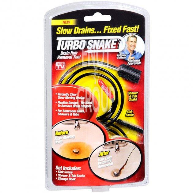 Turbo Snake – ефективний інструмент для чищення зливів від волосся та інших засмічень. Забудьте про складні та дорогі сантехнічні роботи, адже з цим універсальним пристроєм ви можете швидко вирішити проблему засмічення! Просто опустіть Турбо Снейк у слив, прокрутіть його, і витягніть. При необхідності повторіть процедуру — і ваші труби знову чисті. Час на усунення засмічень зменшується до кількох хвилин!