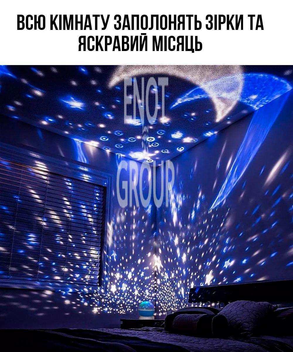 - Реалістичний проекційний ефект: Проектор відображає тисячі зірок на стелі та стінах, створюючи відчуття, ніби ви знаходитесь під відкритим небом.
