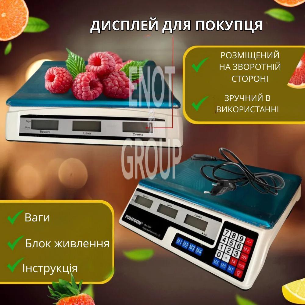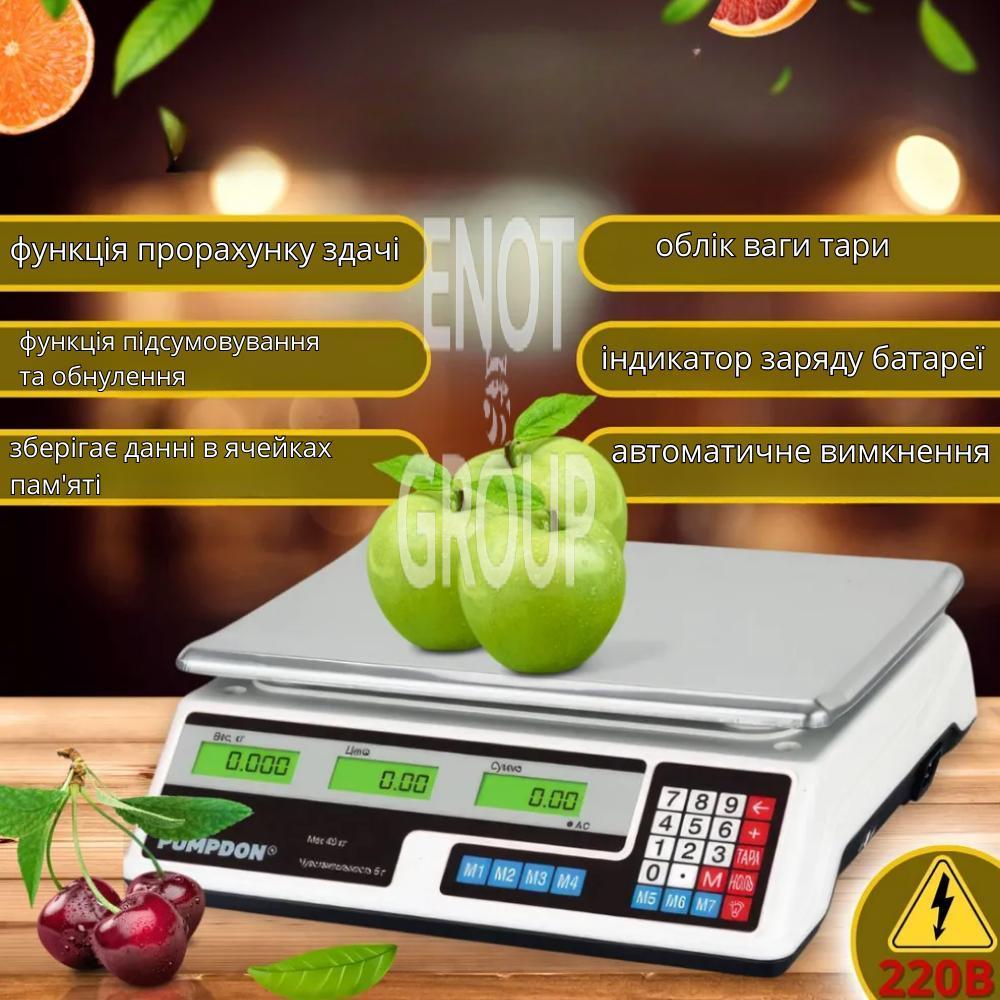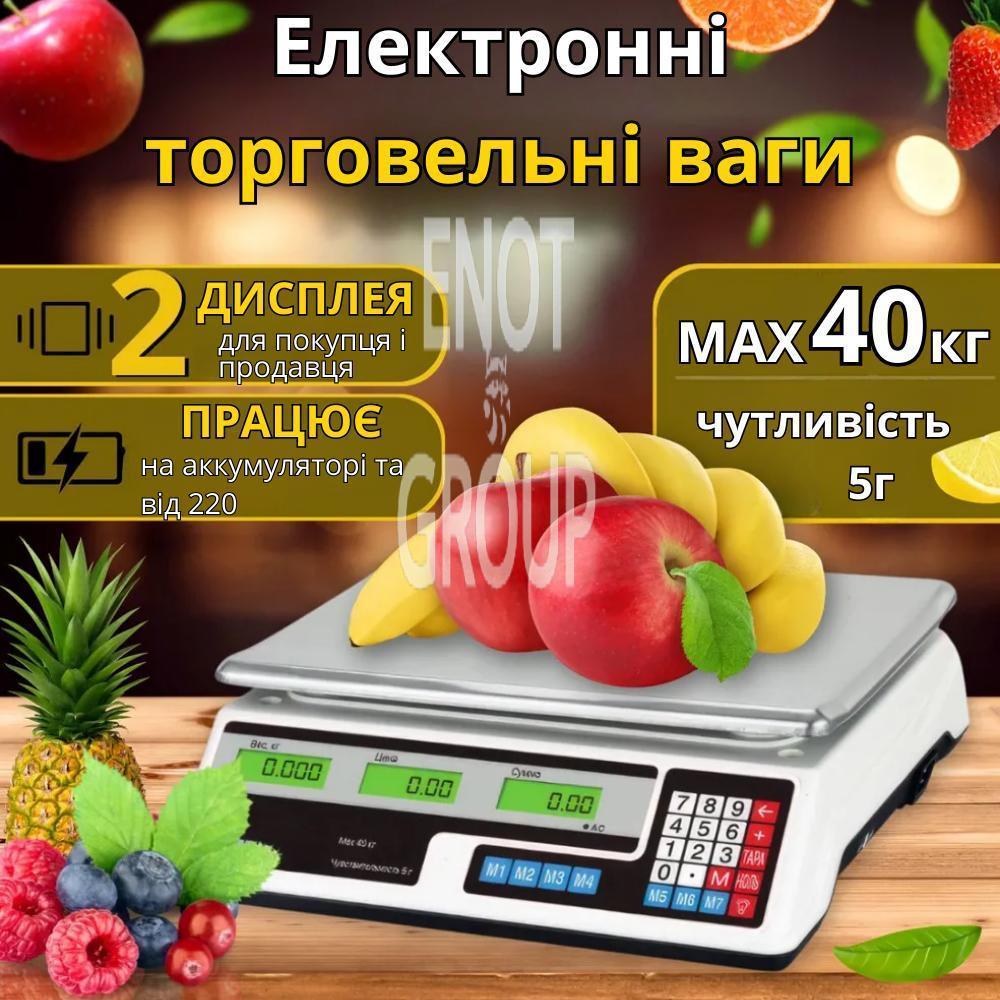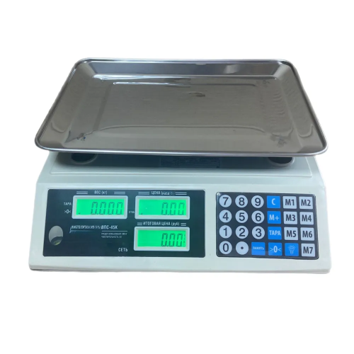 "OptiWeigh AT-707T" — це високотехнологічні електронні торговельні ваги, створені для забезпечення надійності та точності у вашому бізнесі. Ці ваги ідеально підходять для використання у роздрібній торгівлі, громадському харчуванні та для домашнього застосування. З максимальною місткістю до 40 кг та мінімальним кроком зважування 5 грамів, ці ваги забезпечують високу продуктивність. Оснащені подвійними РК-дисплеями для зручного моніторингу, ваги мають вологозахищену клавіатуру та можливість роботи в широкому температурному діапазоні від -10°C до +50°C. Додаткові функції, як автоматичний розрахунок вартості, пам'ять на 7 цін, та автоматичне встановлення нуля при ввімкненні, підвищують ефективність роботи. Вбудований акумулятор забезпечує тривалу незалежність від електромережі, роблячи ваги ідеальними для мобільного застосування.
