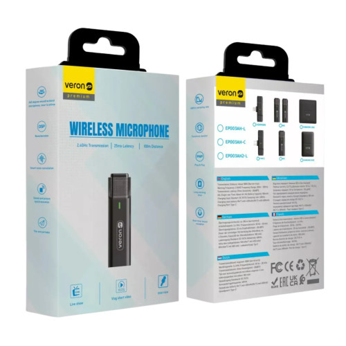 Veron EP033AH2-L — професійний бездротовий мікрофон для iPhone, який забезпечує високу якість звуку, мобільність та простоту використання у будь-яких умовах.
