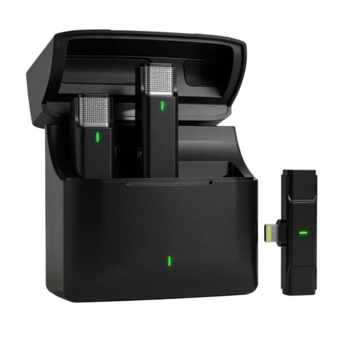 Мікрофон оснащений автоматичним підключенням: достатньо вставити приймач у порт Lightning, і він миттєво синхронізується з телефоном без додаткових налаштувань. Це дозволяє швидко розпочати запис або трансляцію без зайвих витрат часу.